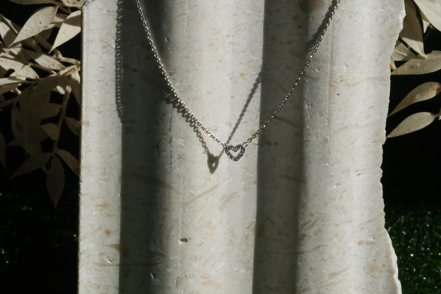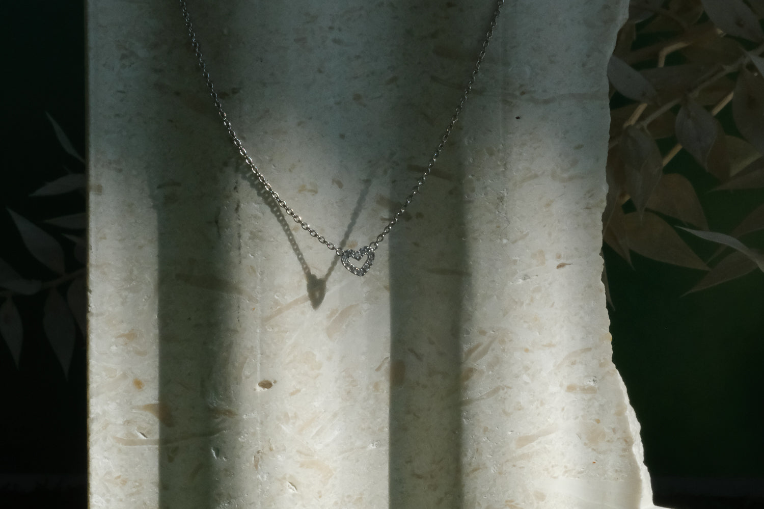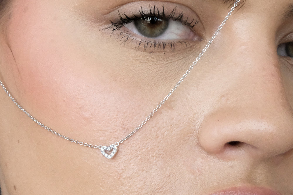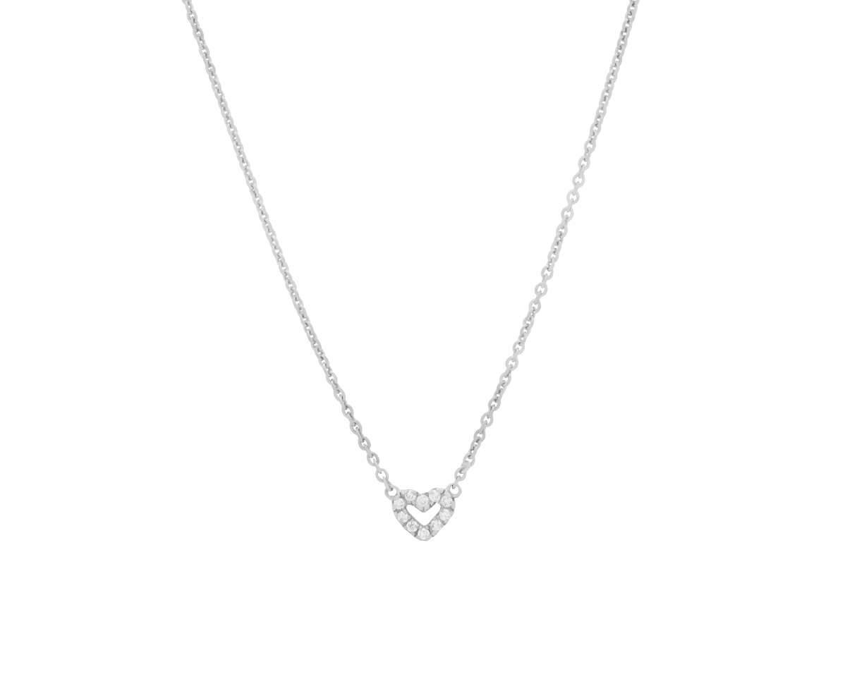 Solid Gold Diamond Heart Necklace - White Gold