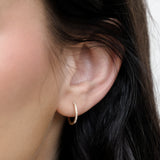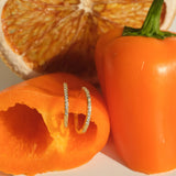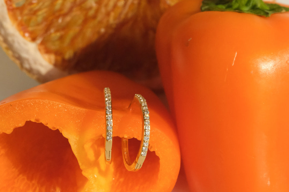 Love our Slim Ophelia hoops? Due to popular demand, we’ve added another size! Meet the Medium Slim Ophelia Hoops, perfected with a row of cubic zirconia that sparkles and dances in the light. An elegant option for every day.