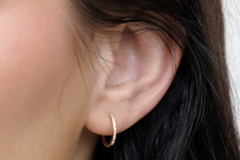 Pure gold is 24 karat, this means that 14 karat gold contained 14 parts gold (58.5%) and 10 parts alloying metal. We have chosen to use 14k solid gold as it is biocompatible making it suitable for new piercings and sensitive skin. However, there is enough alloy to ensure it is still sturdy and not too soft. The higher the karatage, the softer the metal & more prone to bending & scratching.