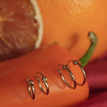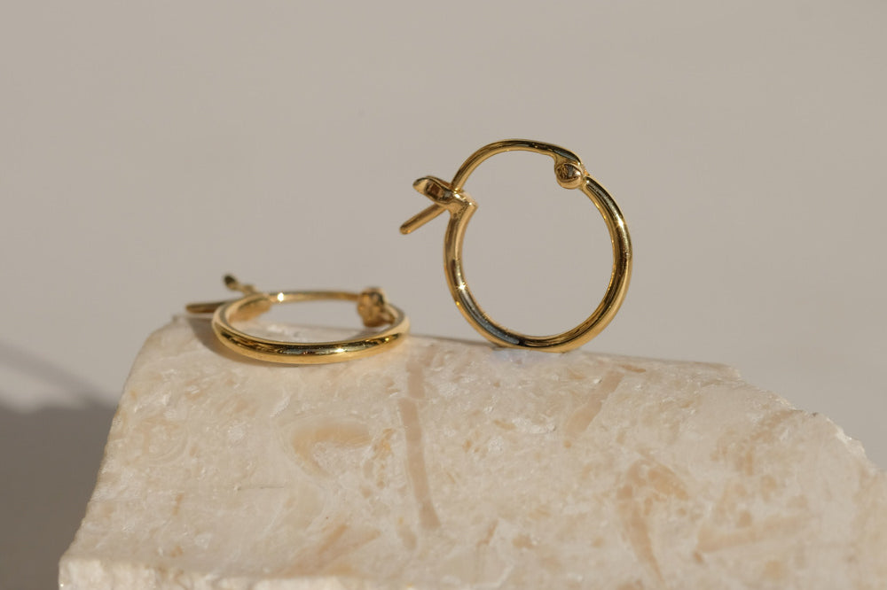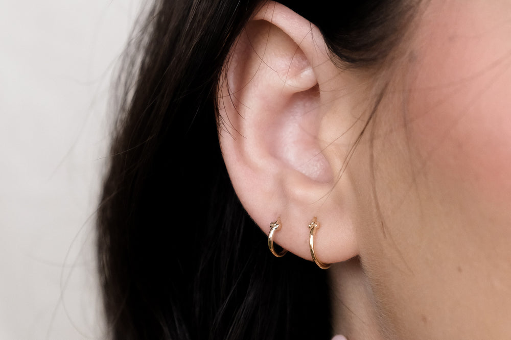 For people getting their first piercings or any cartilage piercings we generally recommend our ball back studs or our internally threaded studs. Studs will typically heal faster than hoops and allow for a more comfy healing journey. For those that are seasoned piercing lovers, we can still pierce with our 14K Solid Gold Hoops!