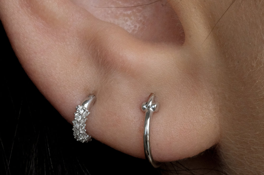 For people getting their first piercings or any cartilage piercings we generally recommend our ball back studs or our internally threaded studs. Studs will typically heal faster than hoops and allow for a more comfy healing journey. For those that are seasoned piercing lovers, we can still pierce with our 14K Solid Gold Hoops!