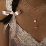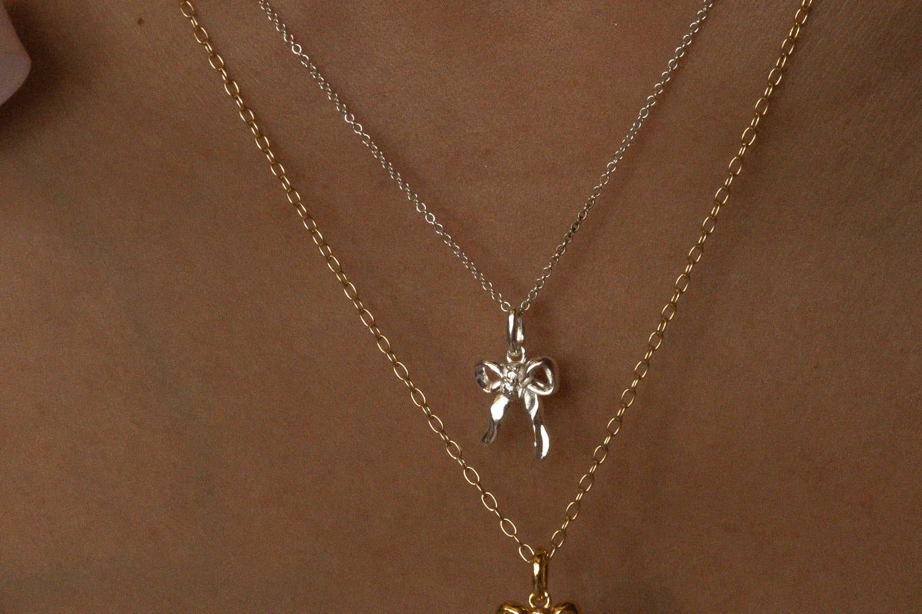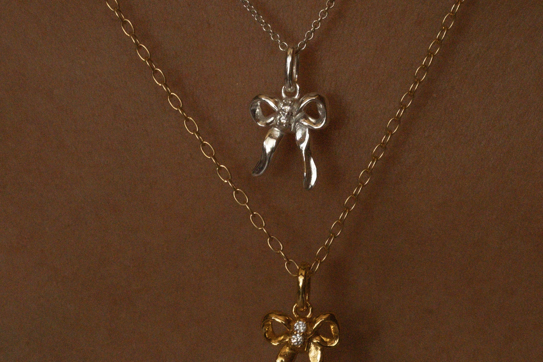 Inspired by all our pink dreams, the Bow collection features the childhood favourite accessory in a playful yet timeless way. Made in 18K Gold Fill and Sterling Silver, these everlasting pieces will make you squeal 'so cute!'