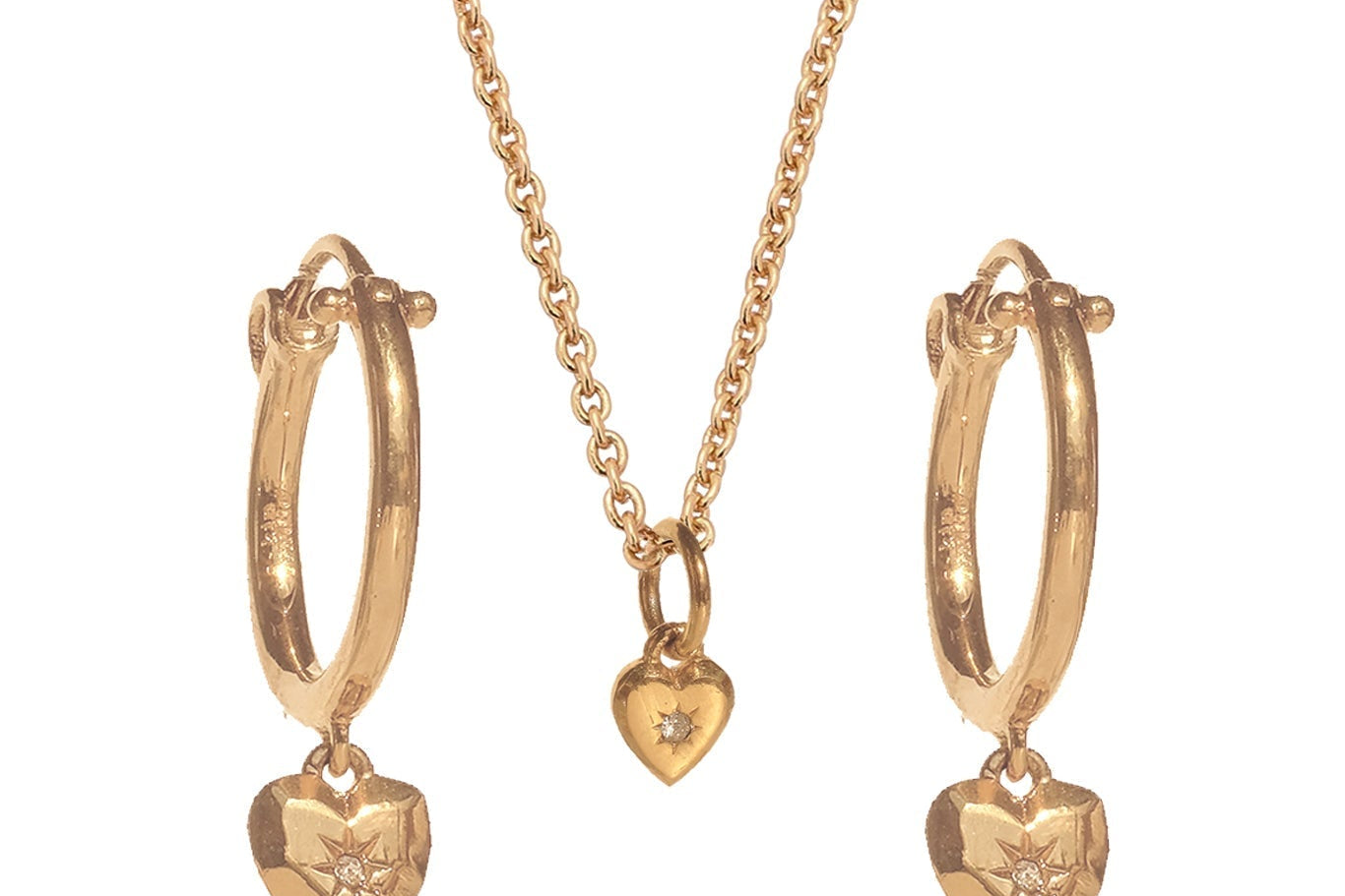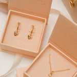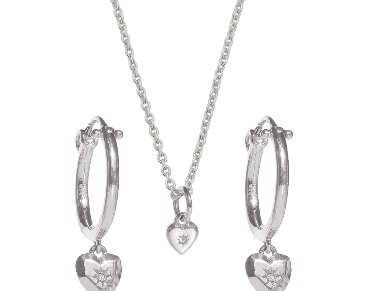 Give the ultimate gift of love with our Limited Edition Heart Gift Set. The set includes the Aiko Heart Hoops and the Mini Heart Charm on a 16 inch Cable Chain Necklace
