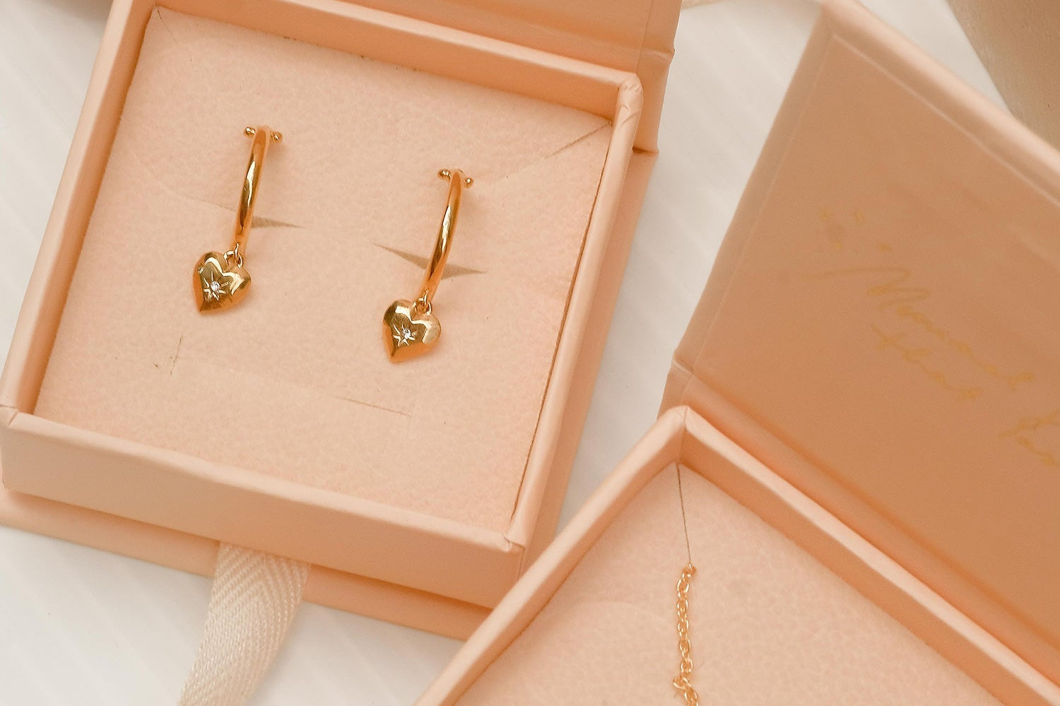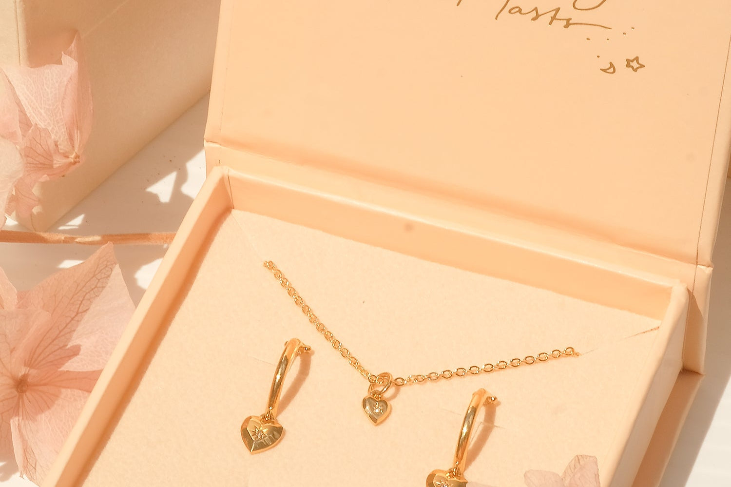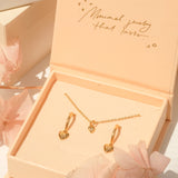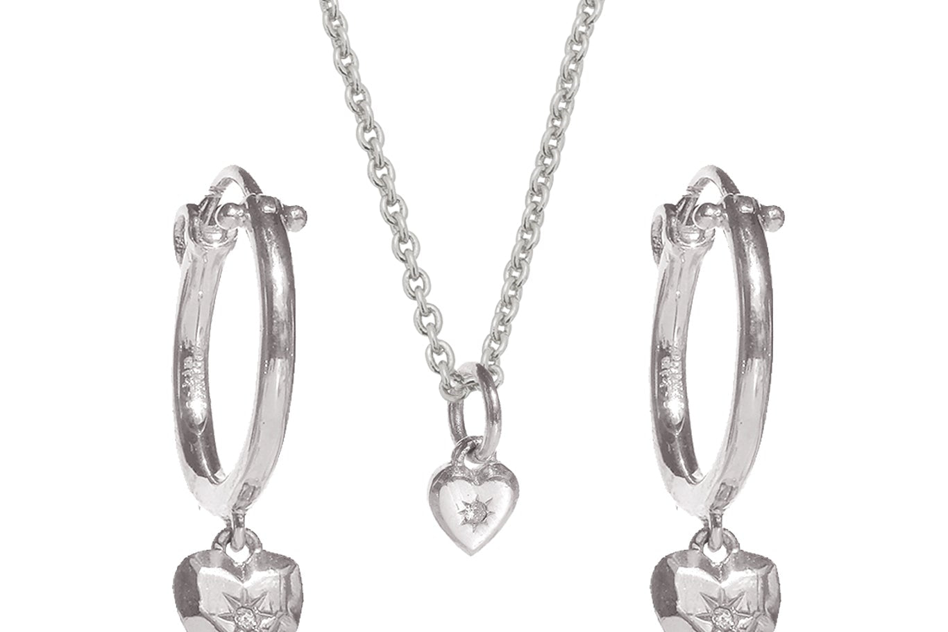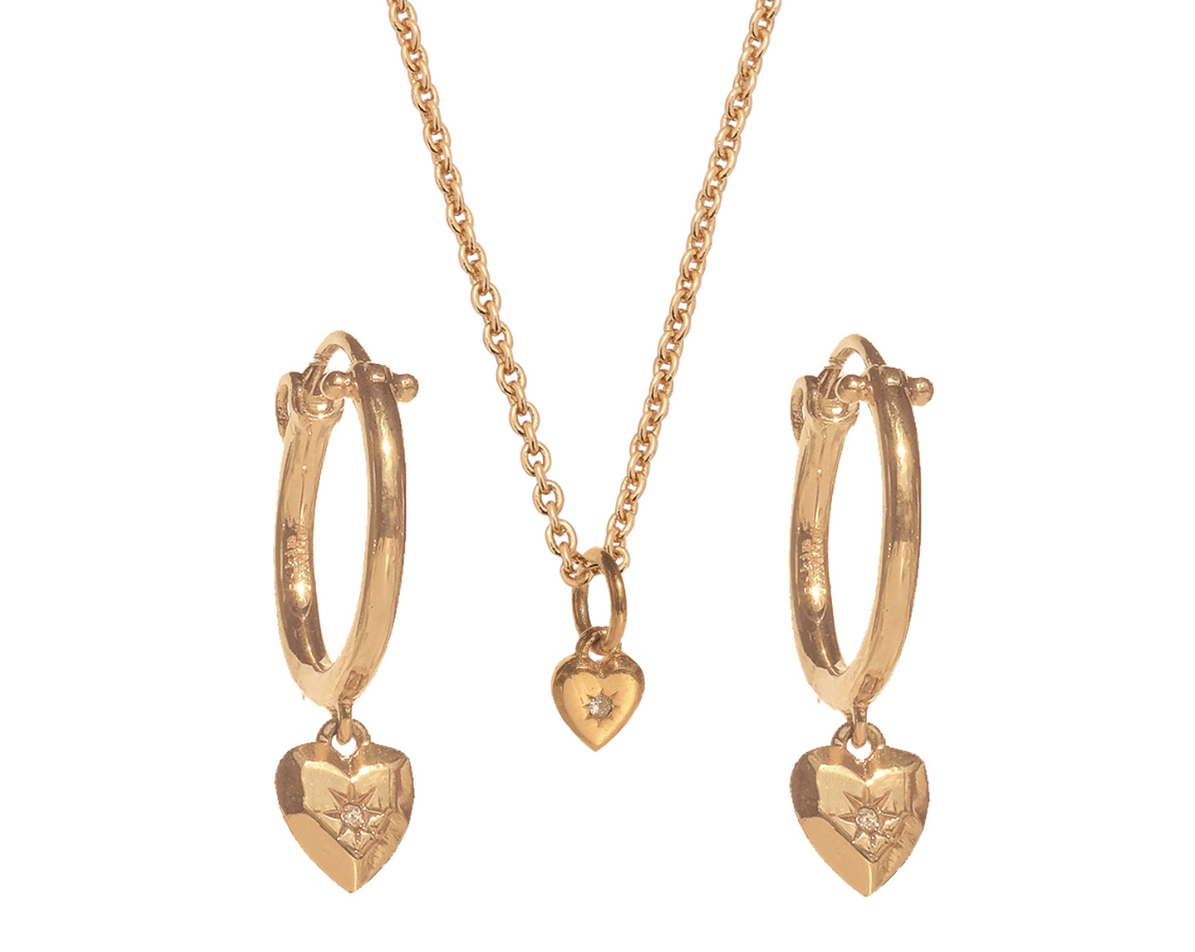 Give the ultimate gift of love with our Limited Edition Heart Gift Set. The set includes the Aiko Heart Hoops and the Mini Heart Charm on a 16 inch Cable Chain Necklace