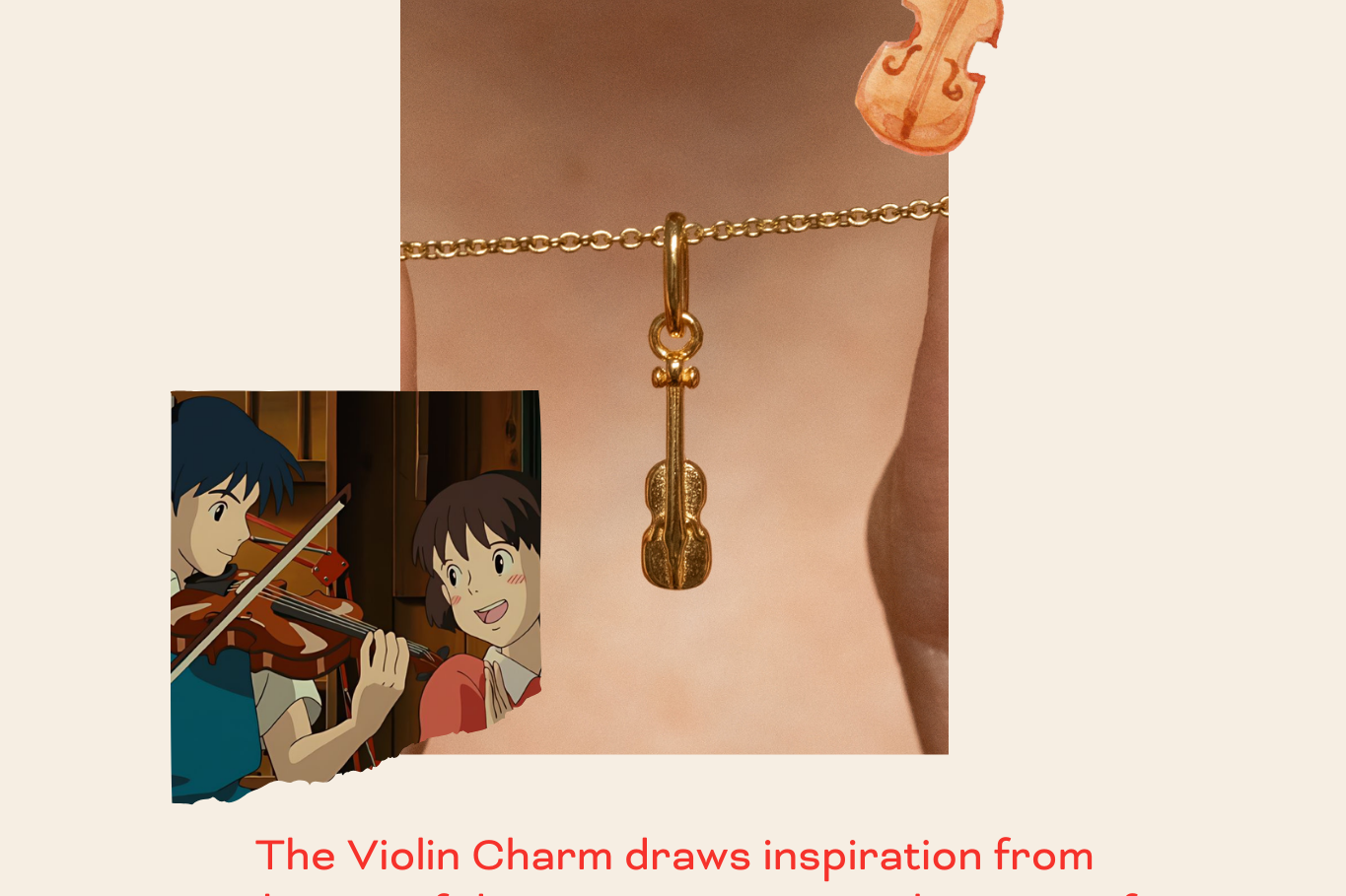 The Violin Charm draws inspiration from Whisper of the Heart, capturing the spirit of Shizuku’s journey as she discovers her passion. Just like the violin in the story, this charm is a symbol of the growth and pursuit of dreams.