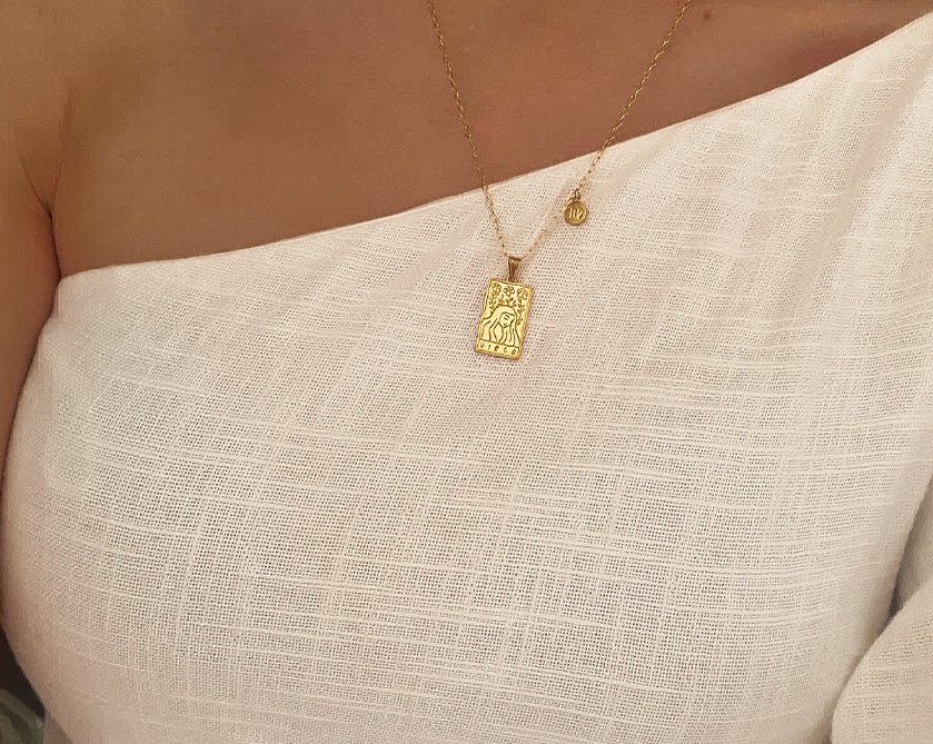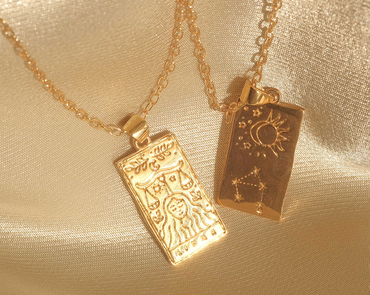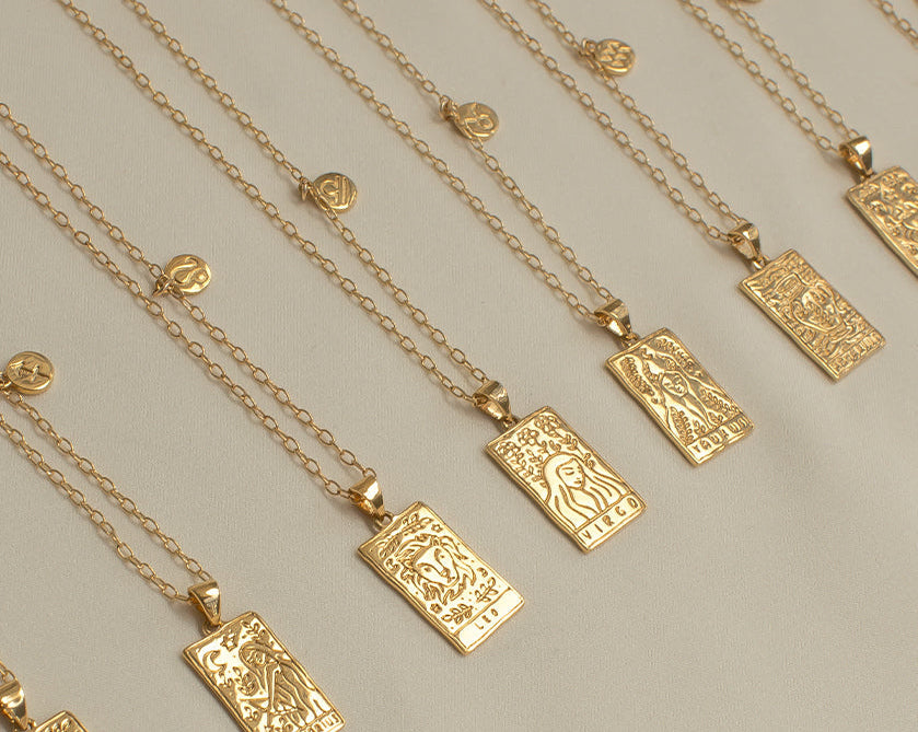 The collection features 12 pendant necklaces with a double-sided tarot-inspired star sign pendant, and a customizable mini star sign charm. Inspired by tarot cards, and the magical world of astrology, the 12 necklaces are customizable with two signs – sun and moon signs – or those with signs on the cusp.