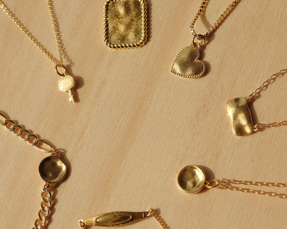 With any type of jewelry, even solid gold and solid silver, regular cleaning and upkeep is needed to keep your jewelry in its best condition. Simply use warm water and soap or a polishing cloth to clean. You can use our jewelry in water, however do wipe it down with warm water after you’re done, especially after being submerged in salt water. Sweat can also make your jewelry duller quicker, especially necklaces, so remove these when you are working out. Avoid exposing your jewelry to skin care products, soaps, detergents and perfumes. Store your jewelry in your S-kin Studio pouch or box to avoid moisture and metal on metal rubbing.