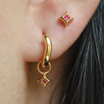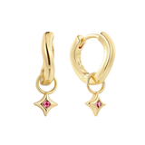Wavy Sparkle Charm Hoops - Ruby CZ (July)