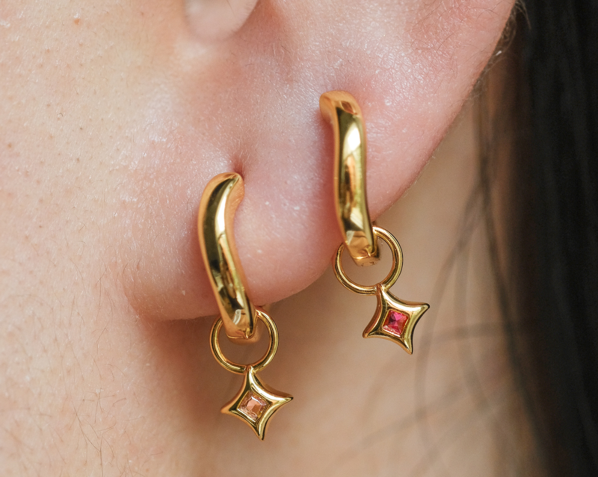 Celebrate your birthmonth in style with the Wavy Sparkle Charm Hoops. Featuring a sleek curved design and a sparkling star charm, these hoops are each set with a refreshing birthstone that represents your month. With twelve options to choose from, they offer a personalised way to celebrate your unique style all year round.