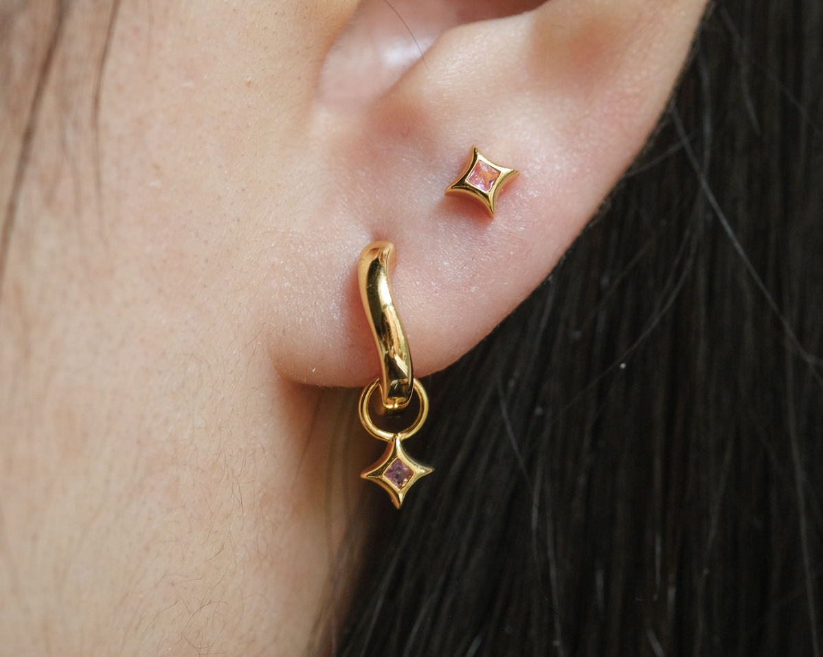 Inspired by the birthstones of each month, we created the Wavy Sparkle Charm Hoops to bring a soft hint of colour to your everyday jewellery line-up. A simple way to add something personal to your look, they pair easily with your favourite pieces and make a lovely gift for birthdays, milestones or any moment worth celebrating.