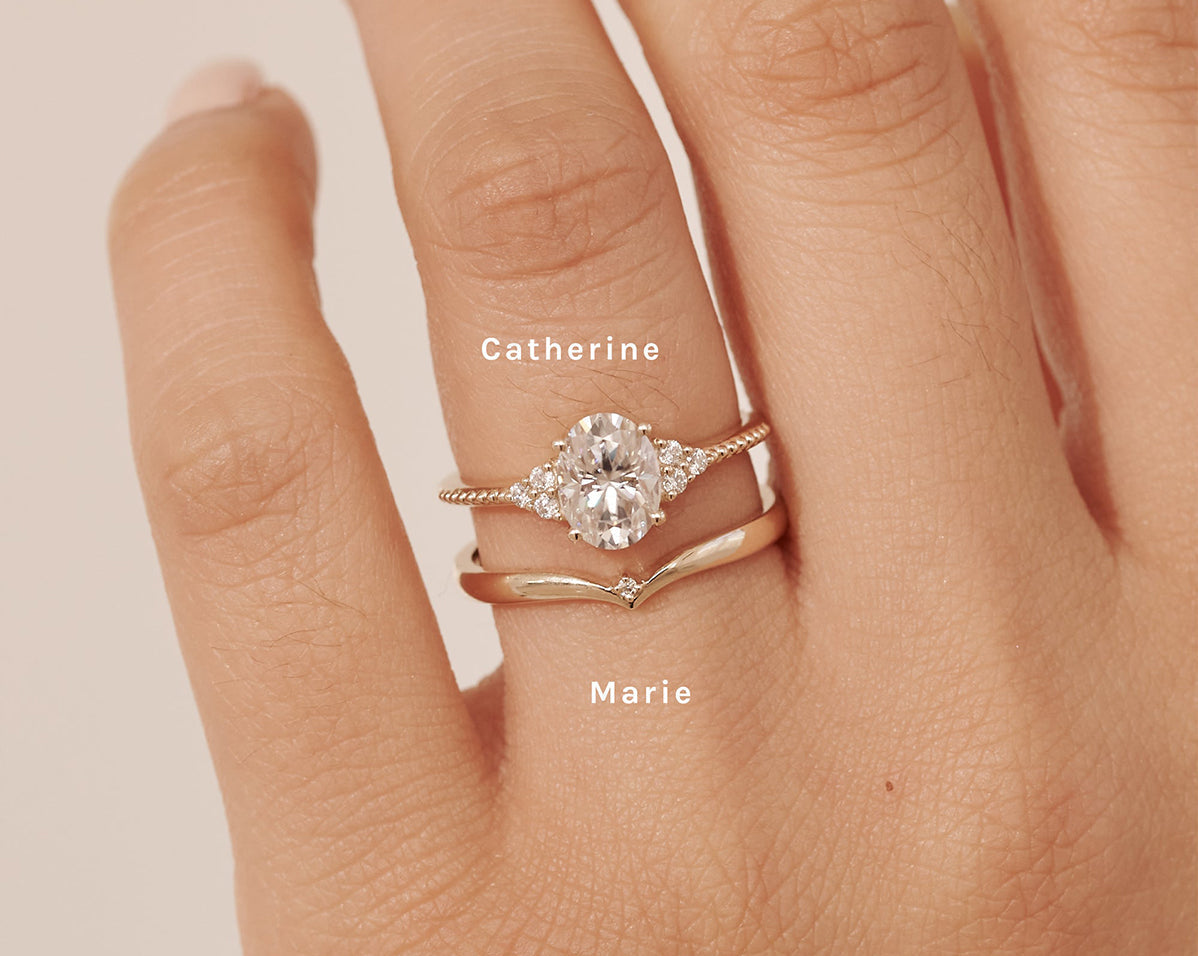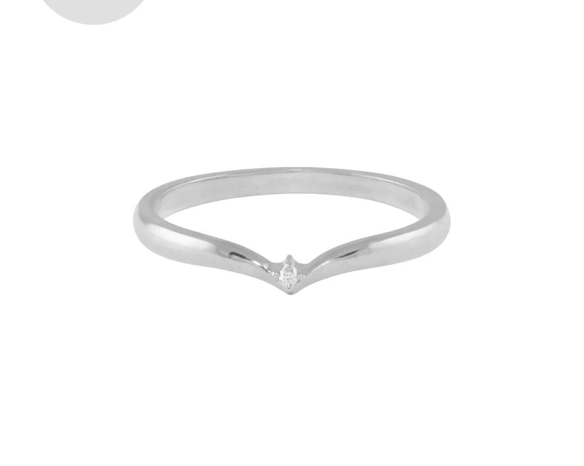 The minimal Marie Wishbone Ring is a timeless classic design. With a slight arch and a tiny moissanite detail, stack your Marie Wishbone Ring with your engagement or ceremonial rings for added glamour.