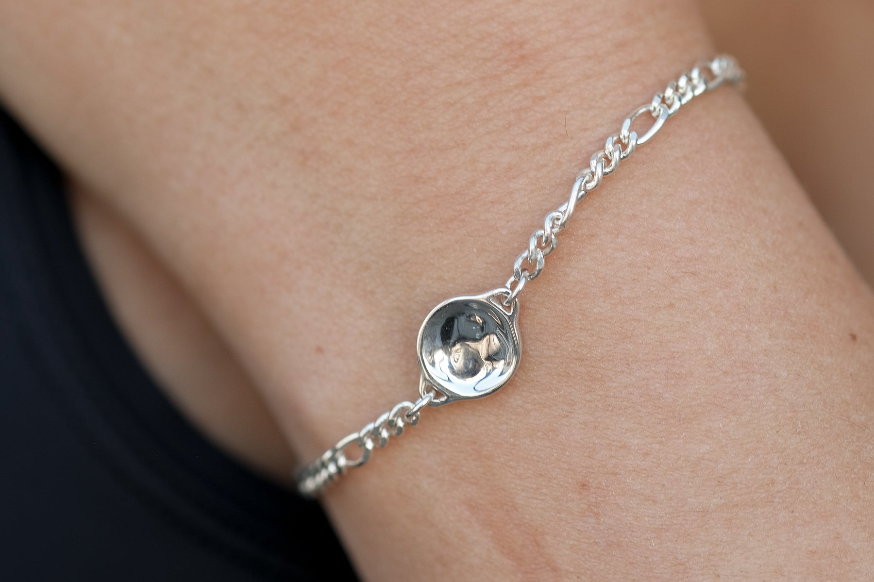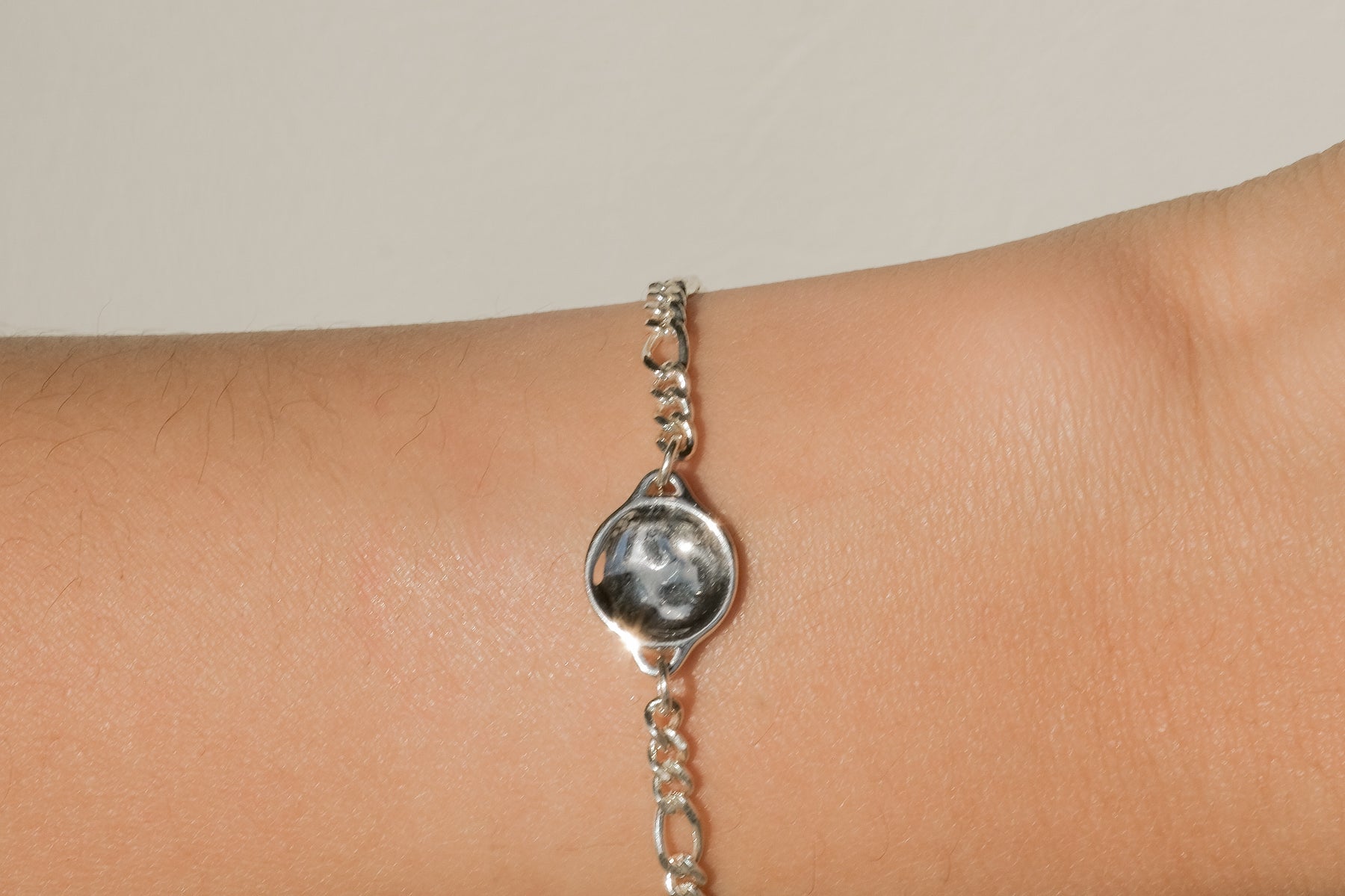 Inspired by the iconic Wanda Maximoff or otherwise known as the Scarlet Witch from the Marvel Universe, this circular pendant bracelet is the perfect minimal engraved piece. It reminds us of Wanda's ability to reshape reality using magic and how you can trust your intuition to form your own reality.