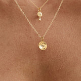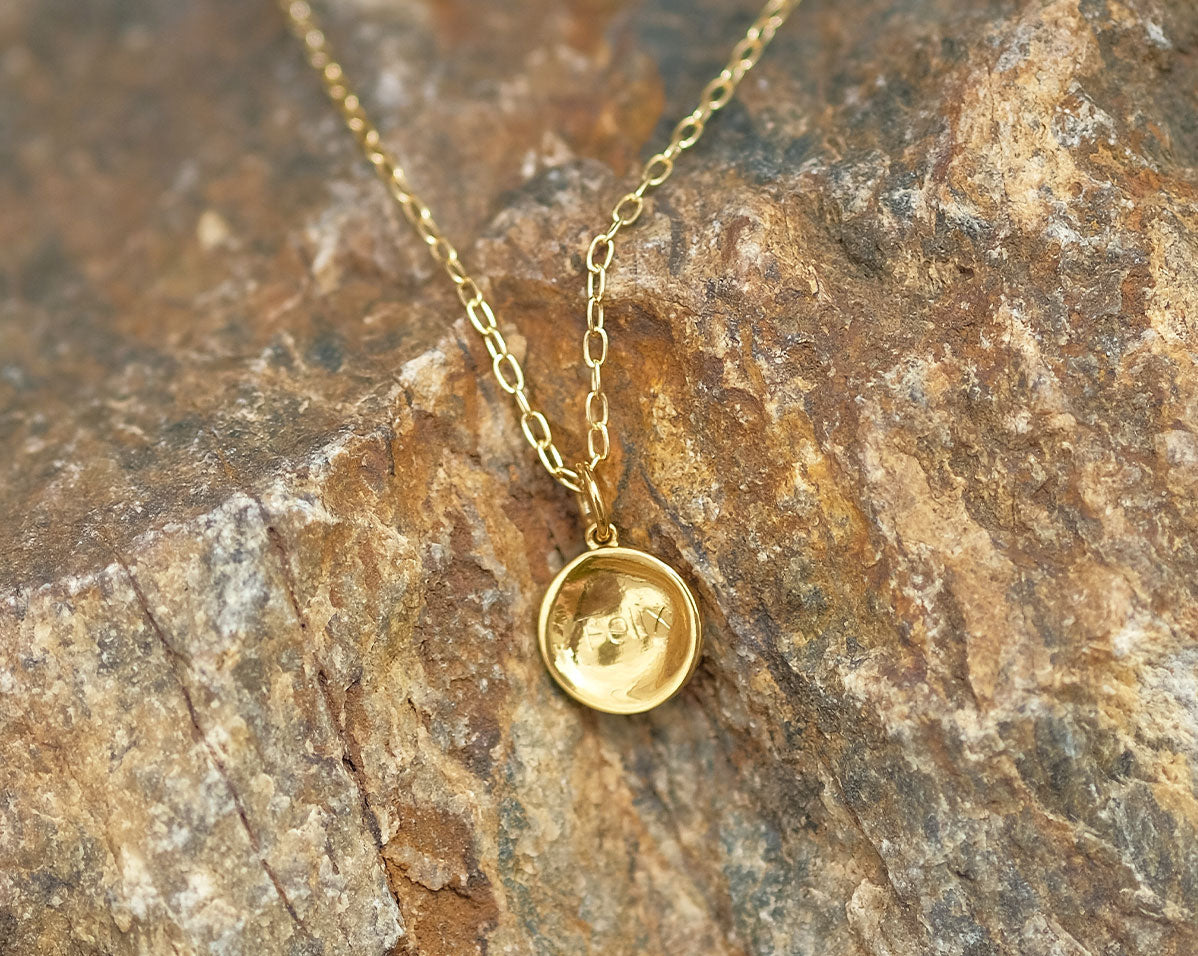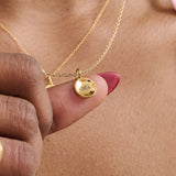 Inspired by the iconic Wanda Maximoff or otherwise known as the Scarlet Witch from the Marvel Universe, this circular pendant necklace is the perfect minimal engraved piece. It reminds us of Wanda's ability to reshape reality using magic and how you can trust your intuition to form your own reality.