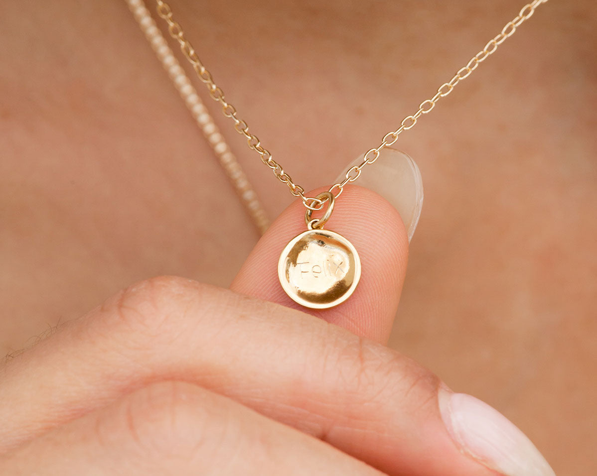 Inspired by the iconic Wanda Maximoff or otherwise known as the Scarlet Witch from the Marvel Universe, this circular pendant is the perfect minimal engraved piece. It reminds us of Wanda's ability to reshape reality using magic and how you can trust your intuition to form your own reality.
