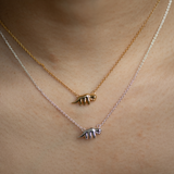 The Kiki Carabiner Necklace is only available in 18K Gold Filled and Sterling Silver. Charms are available in solid gold options either ready-to-ship or made-to-order. Please ensure you read each charm’s description carefully as we will ship all pieces together including made to order pieces.