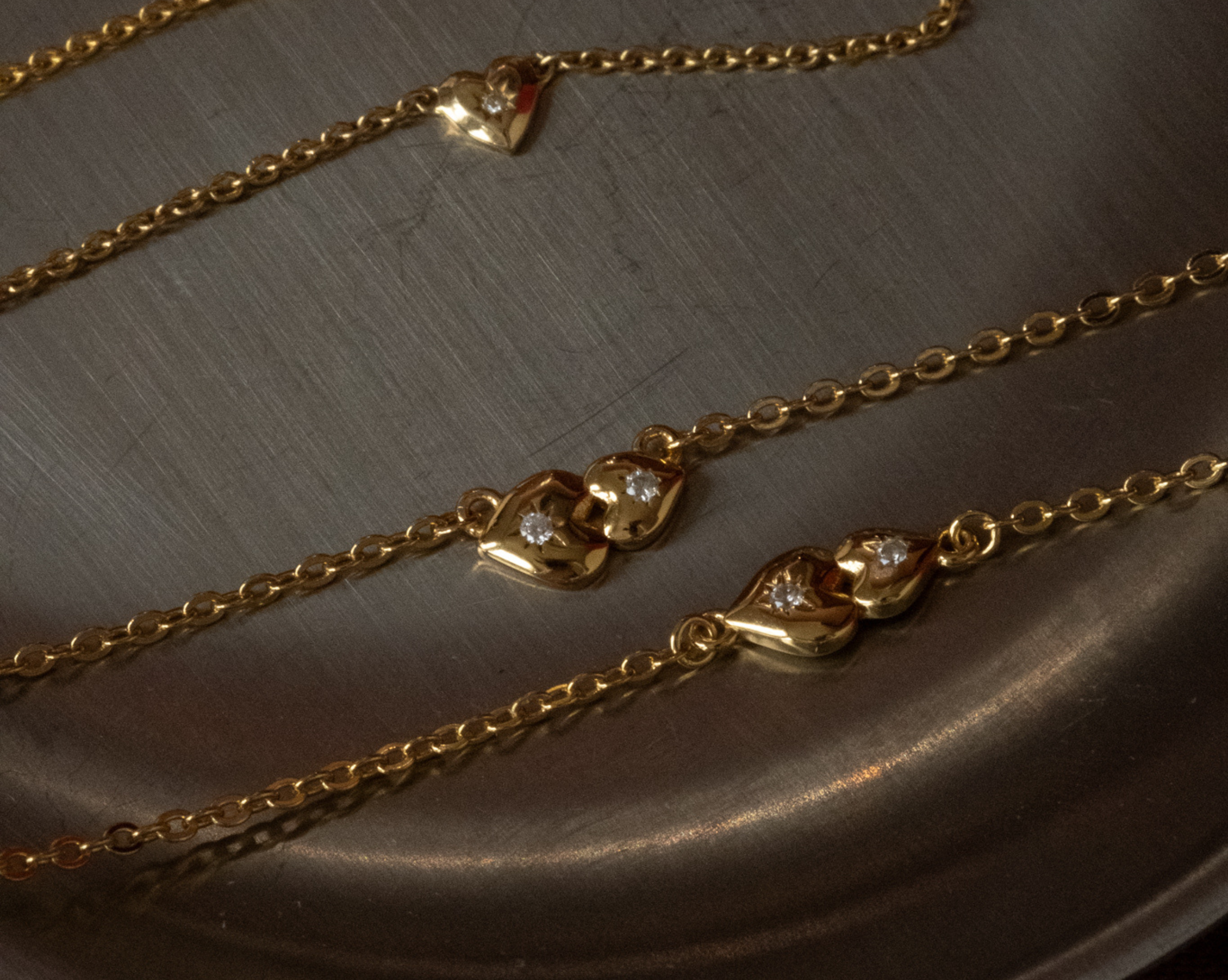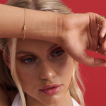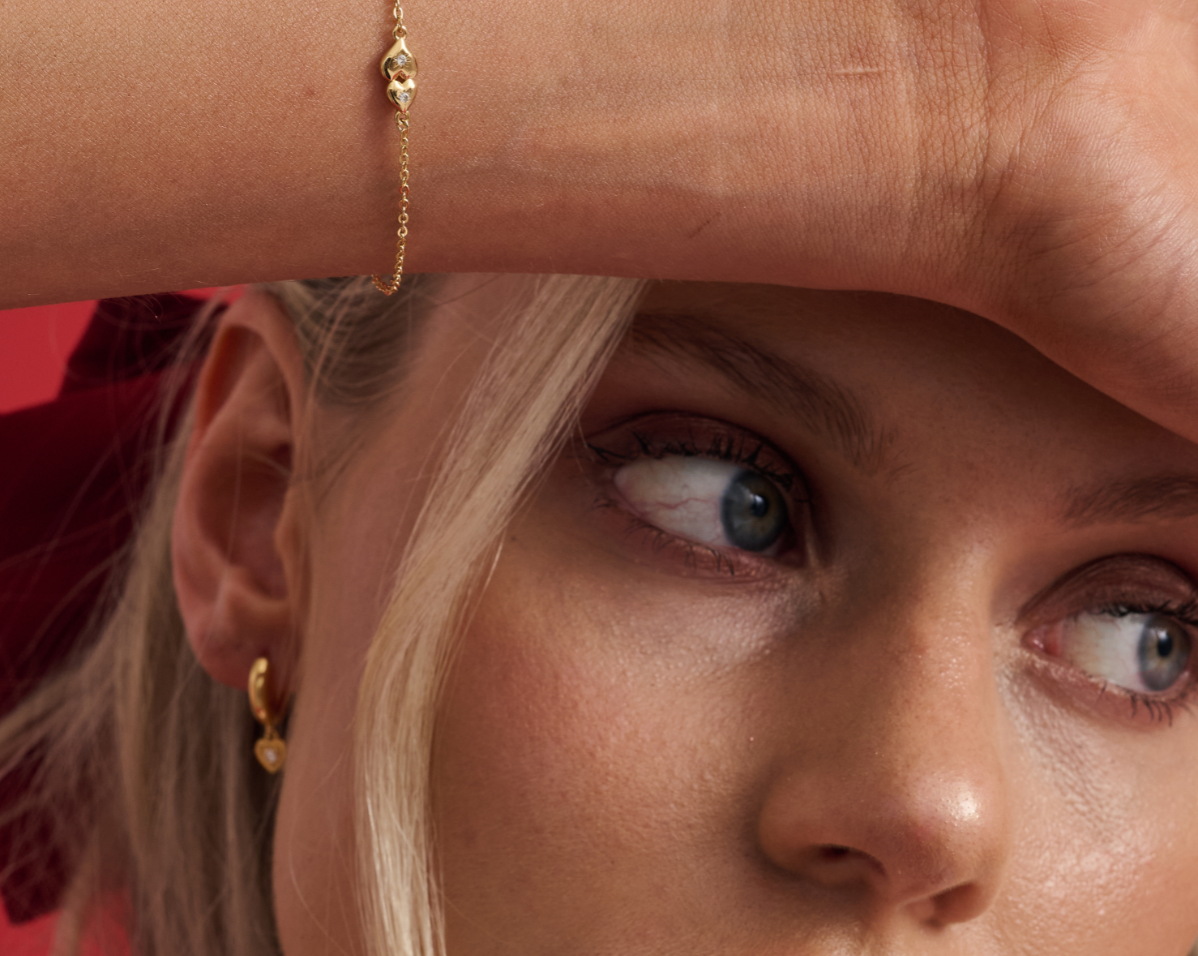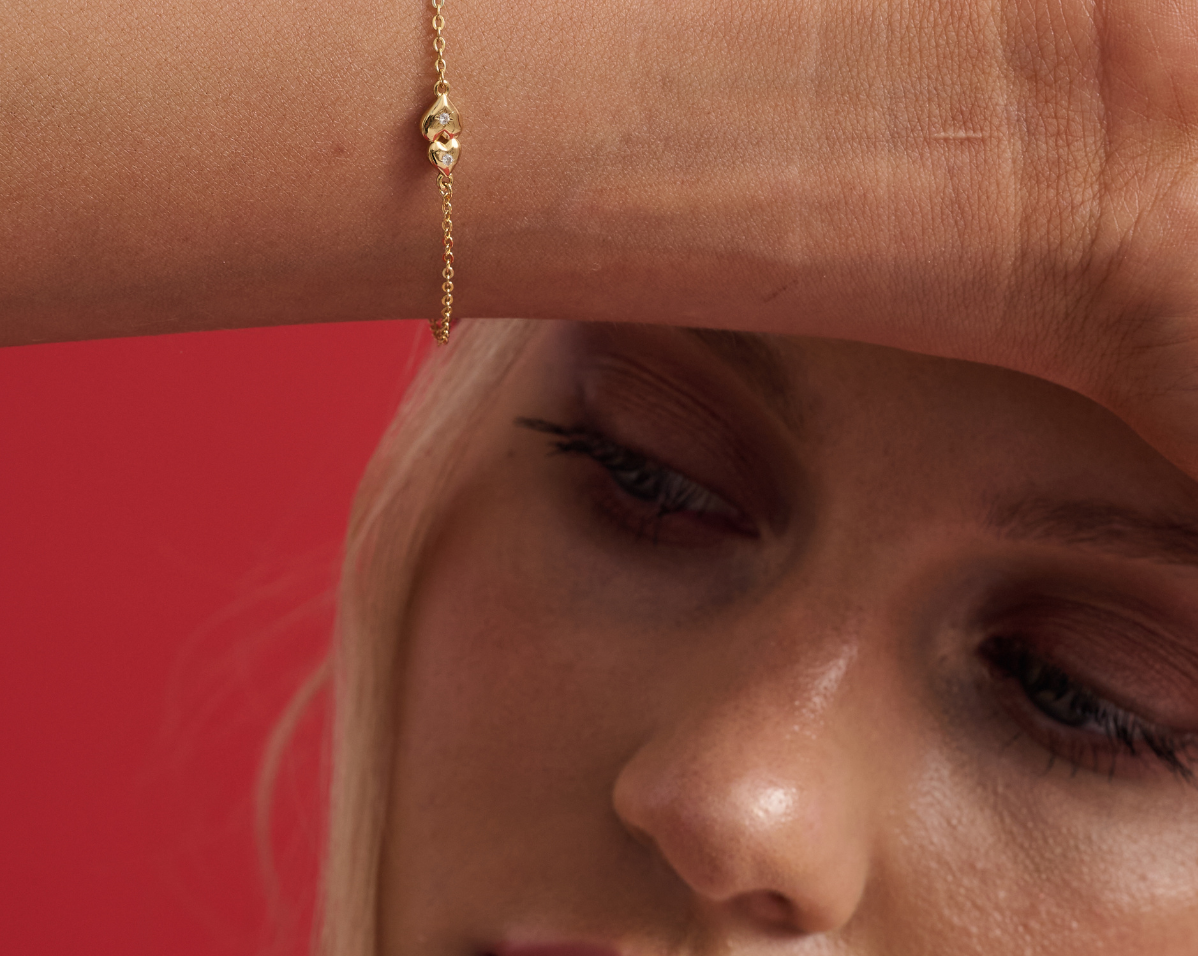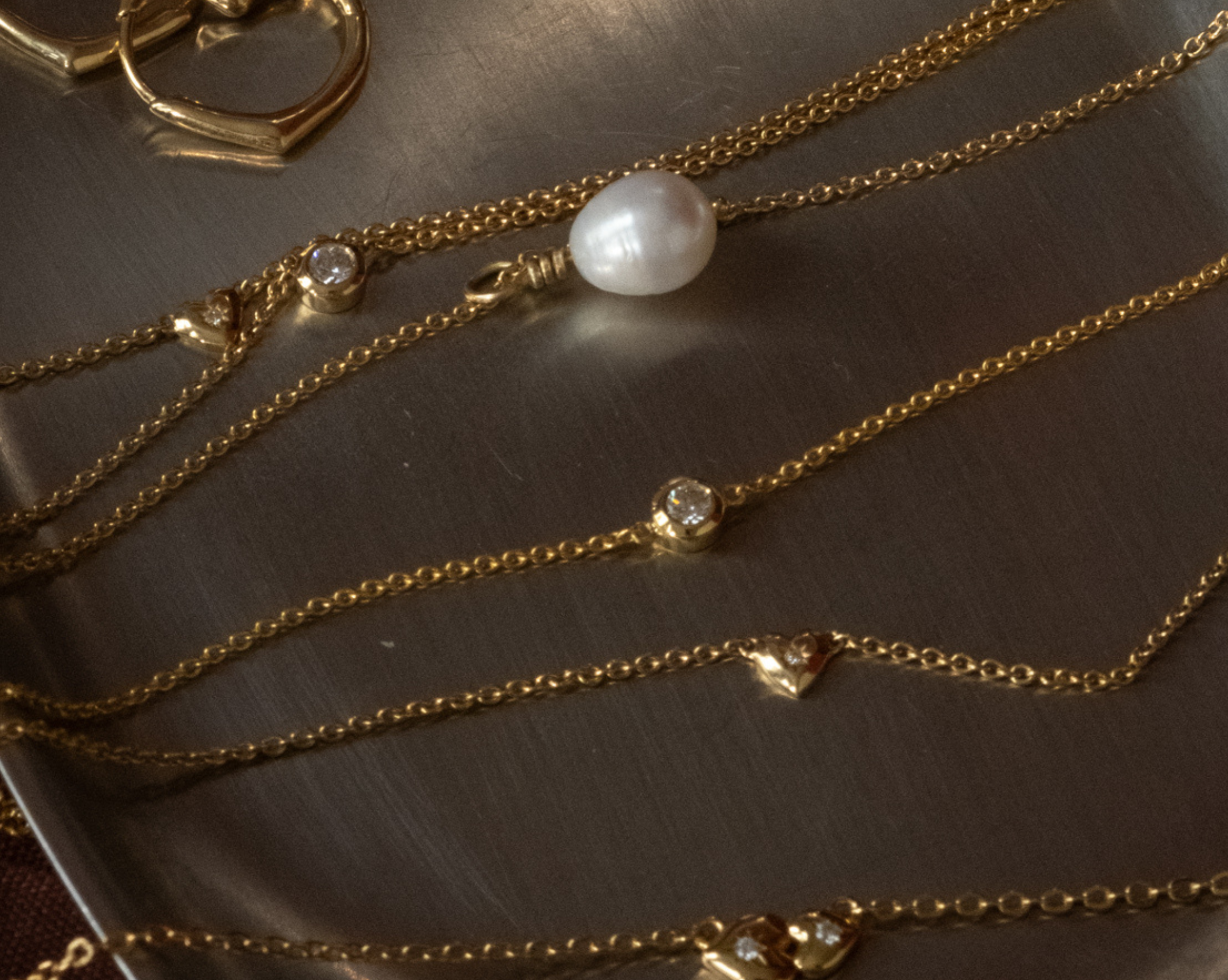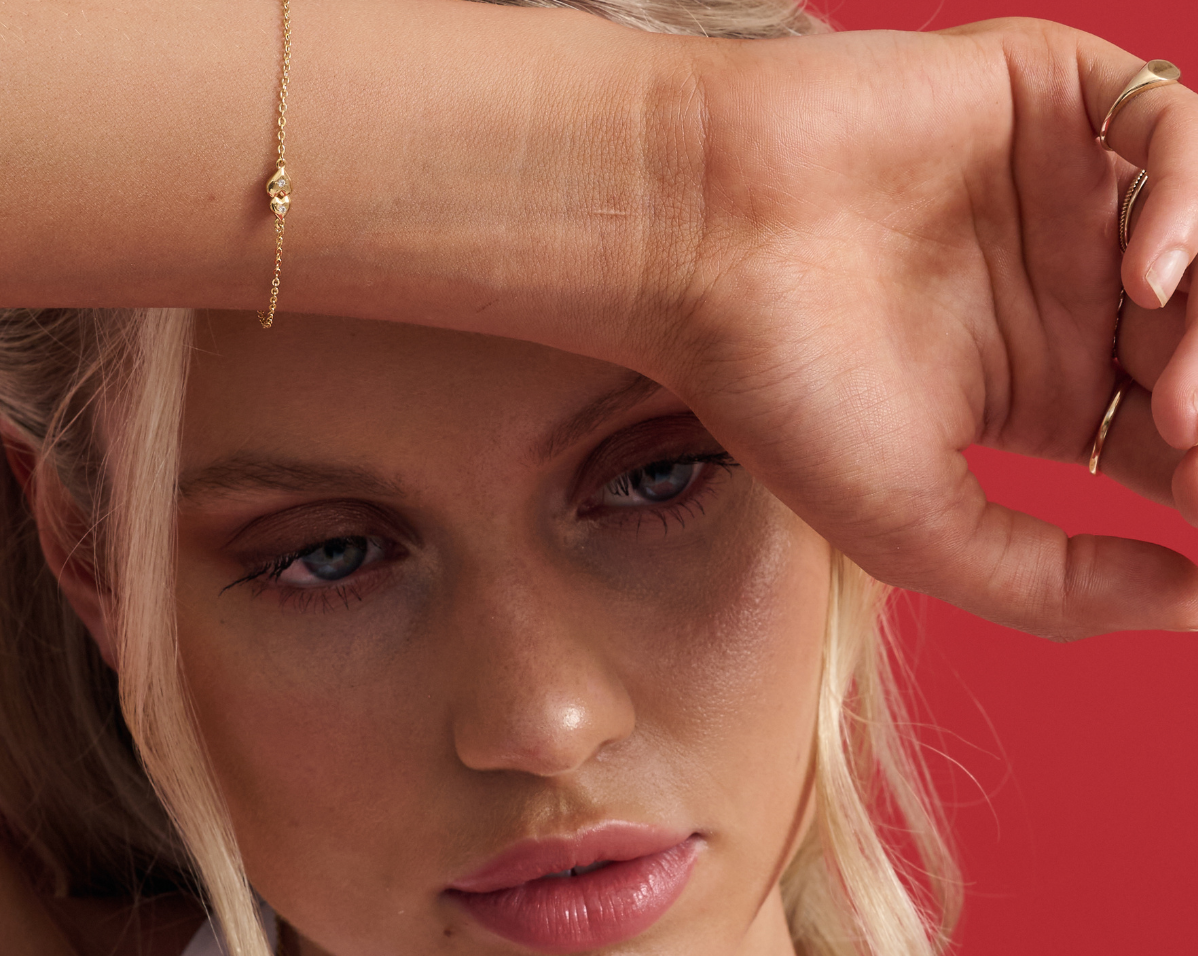 With any type of jewelry, even solid gold and solid silver, regular cleaning and upkeep is needed to keep your jewelry in its best condition. Simply use warm water and soap or a polishing cloth to clean. You can use our jewelry in water, however do wipe it down with warm water after you’re done, especially after being submerged in salt water. Sweat can also make your jewelry duller quicker, especially necklaces, so remove these when you are working out. Avoid exposing your jewelry to skin care products, soaps, detergents and perfumes. Store your jewelry in your S-kin Studio pouch or box to avoid moisture and metal on metal rubbing.