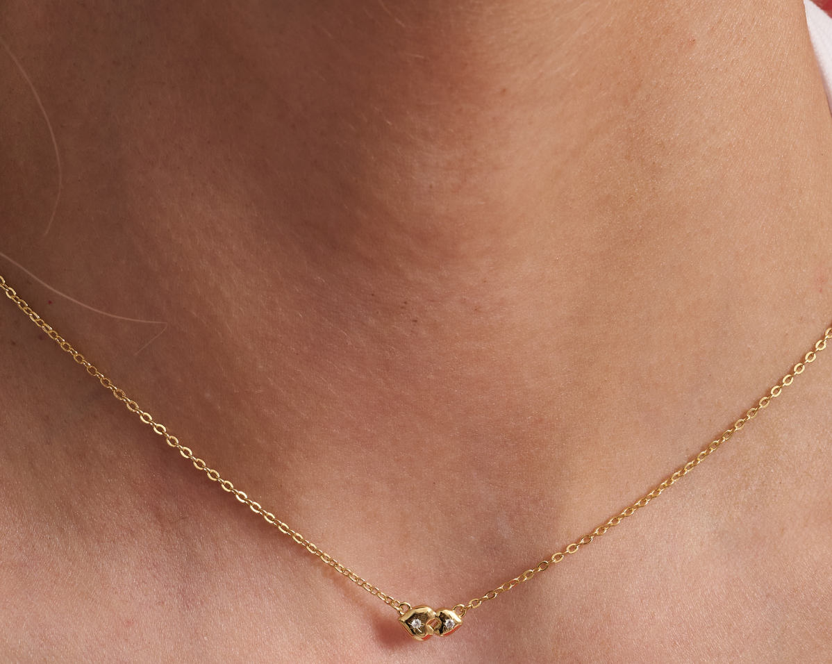 The You And Me Dainty Hearts Necklace features two delicate hearts intertwined to symbolise love, connection, and togetherness. A sweet and meaningful piece, perfect for layering or wearing on its own.