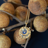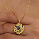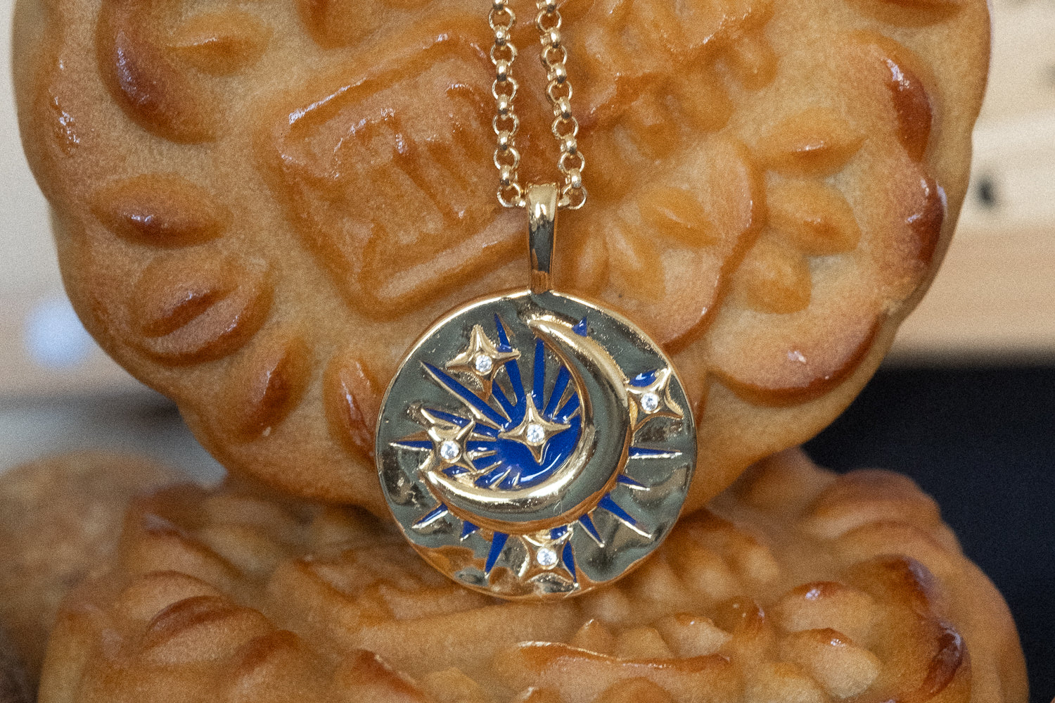 Discover the beauty of the Yue Necklace, inspired by the legend of the moon goddess, Chang’e, and her rabbit companion. This necklace features eight shimmering gemstones, like stars in the night sky, honoring the eighth lunar month when the Moon Festival is celebrated. The sapphire blue starburst design captures the magic of the night.